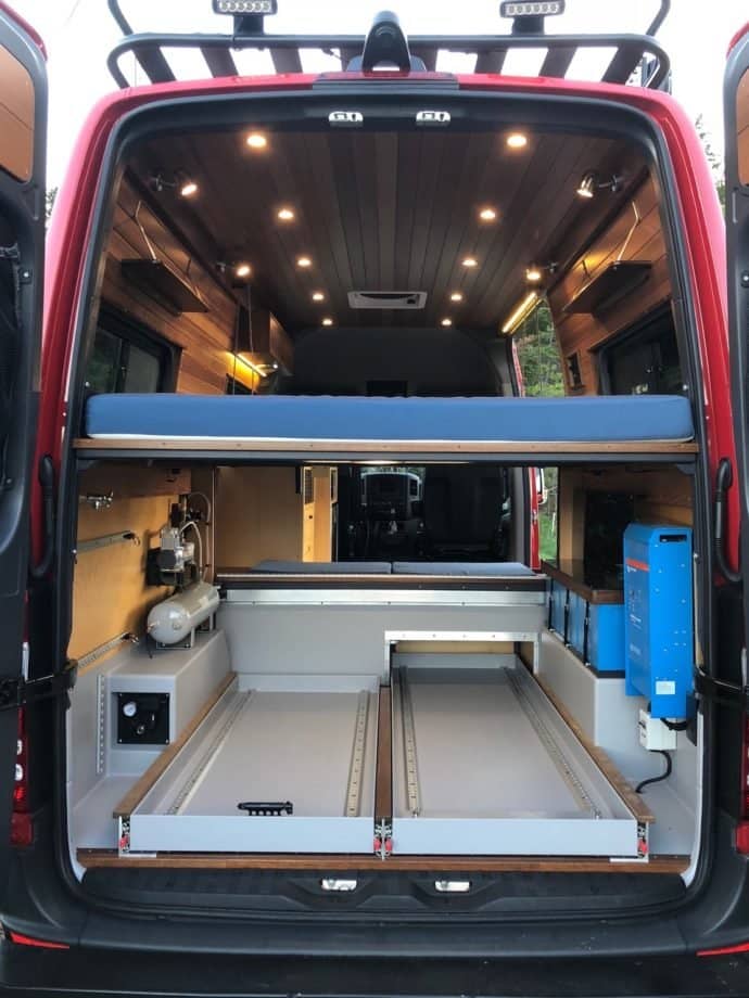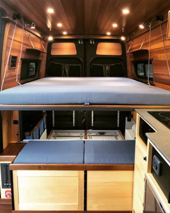 Does that sound like it’s asking too much? Well, both Eli and Tyler are themselves seasoned adventurers so they have first-hand experience of the things which can make van life as much fun after a month as it was on the first night. Perhaps the most important ingredient there is that as well as being practical – the Van should have a living space you’re proud to call ‘home’. That’s where a conversion which has been crafted with meticulous attention-to-detail makes all the difference. Quality shows…