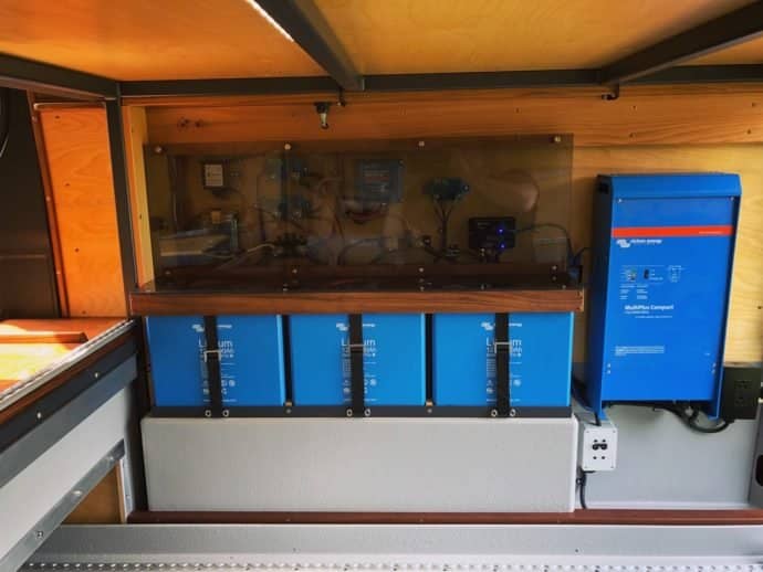 There’s quality behind the scenes, too. The provision of remote electrical power – for induction hobs, refrigeration, lighting, laptop recharge, diving bottle refill, and entertainment systems – relies on Victron equipment. Robust, energy-intense Lithium batteries store power provided by up to 600W of solar PV, efficiently harvested by an MPPT solar charger. That power is converted to domestic voltage (of either 110VAC/230VAC) by inverter/chargers capable of meeting high peak power demands and handling the formidable 230 amps which a Dual Alternator might be providing.