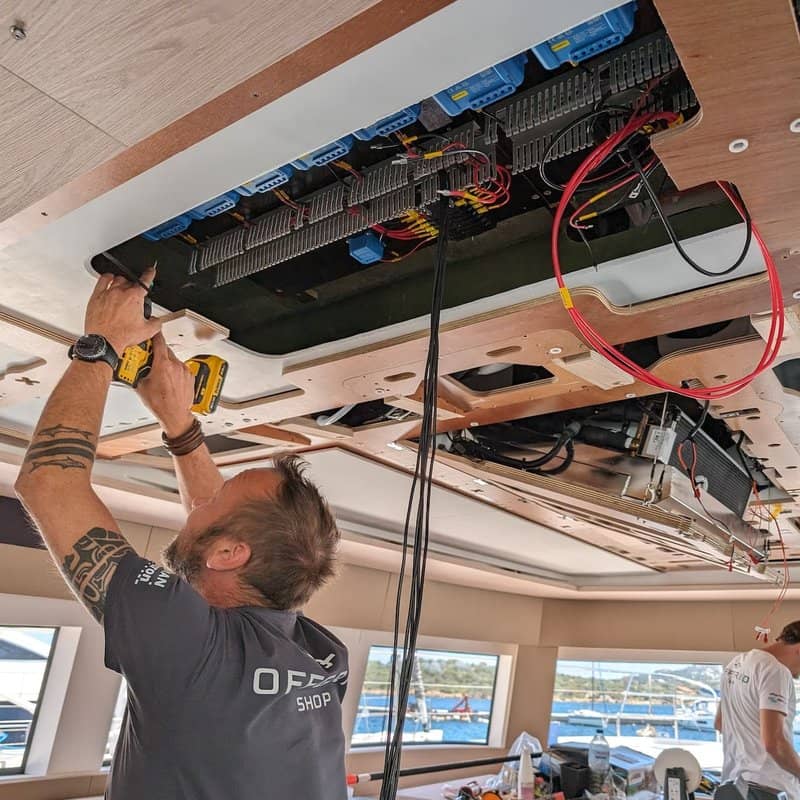 The Lagoon SIXTY 5 sailing catamarans incorporate one or two diesel generators in their on-board power system. We regularly equip these vessels with a large customised solar system; up to 4x 150A alternators mounted on a custom-made bracket with 4x Wakespeed alternator regulators; lithium battery storage system, and high-performance inverters.