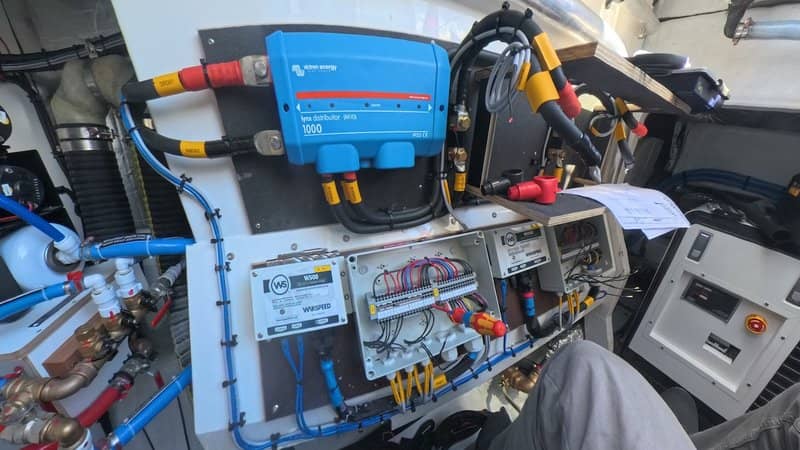 If you don’t easily get sea sick why not join Norwegian Helga Marie Løvenskiold Kveseth – who goes by the name Mara – on her LIVEstream as she crosses the Atlantic? Already having 25,000 miles under her keel, Mara is sailing her Saltram Saga 36ft double-ender called Showgirl to St Martin in the Caribbean in order to qualify for the Golden Globe Race 2026. The Golden Globe is an epic yacht race – more than twenty participants are expected to cross the start line later this year on September 6th to sail singlehanded around the world using only the equipment which was available to circumnavigators sixty years ago. Using a sextant to make celestial observations, and plotting their position on paper charts, skippers spend nine months at sea crossing world’s remotest oceans in their grandest moods. It’s not for the feint hearted. For her qualifying passage Mara’s boat is equipped with the latest technology in order to bring us closer to the experience of sailing alone. Her 24 hour live stream via Starlink router, together with other domestic conveniences, uses a lot of power, The original electrical system onboard was unable to support the planned loads so she enlisted the help of Sea & Land Yacht Works to do a power audit of all her domestic and navigation devices and provide a system which could support the ambition. Sea & Land Yacht Works is a marine service provider based in Rhode Island U.S. specializing in marine electronics, electrical and marine systems. Interestingly, they offer their technical service all round the world by contracting qualified installers to build systems from their drawings, using specifications which meet ABYC certification standards. Company founder Michael Garretson is an AYBC Master Technician and also a Mechanical Engineer. Working from his drawings installer Electrical Marine Services Gibralter built Showgirl’s power system in Gibralter just before Mara set off on her solo transatlantic passage. Power Assumptions The power audit for Showgirl’s electronic devices suggested a daily power consumption of 492Ah Equipment Load Fridge 60 NAV Instrument 45 Starlink 240 Rasberry pi 28 Camera 47 dgi 16.3 random cameras 7.5 VHF 12 Lighting 15 Phone charging 2 handheld 0 Watermaker 19 Total: 491.8 In order to provide that power three power generation sources were installed: Showgirl’s four solar panels of 100Wp each would typically provide 116Ah per day . The solar harvest is controlled by two MPPT solar charge controllers of 100/30 and 75/10 to charge a 12V lithium battery bank of 960Ah. As the vessel sails a Watt&Sea Hydrogenerator 600 produces power. Assuming an average speed of 4.5knts, that model will produce 157Ah per day There’s a 275A alternator on board controlled by Arco Zeus 275L alternator regulator to maximise the power harvest. Running the engine at 1500rpm for an hour is likely to produce 230Ah . Total daily production from power generation is 503Ah . Power consumption and harvest is monitored by a number of BMV battery monitor across the MPPT solar chargers, alternator output, Watt & Sea hydrogenerator output, and the lithium battery bank loads. There is an Orion DC to DC charger to manage battery charging for Showgirl’s dual battery systems – engine starting and domestic use. A MultiPlus 12/1600/70 Inverter/Charger provides AC power. A Cerbo GX communication centre harmonises all Victron and third-party devices and makes real time data monitoring and programming available from anywhere in the world via the Starlink satellite router. The same information is just a fingertip away on board via the GX Touch 50 user interface. Showgirl is a little more than halfway across the Atlantic at the time of writing. Once she arrives, Sea and Land Yacht Works plan to install more custom solar panels and additional electrical work before she recrosses the Atlantic a few months later – live streaming again – in preparation for her Golden Globe Race participation. You can ask Mara a question via the live chat function of her LIVEstream. She typically makes time to answer questions on camera after sunset each day – her time. She says she’s going to miss all the live chat on her Golden Globe Race! Let’s see how she’s getting on: If you’re already in the Caribbean on board a boat – and particularly if you want to find out more about reliable power or workshop a power problem – take a look at our recent story here.